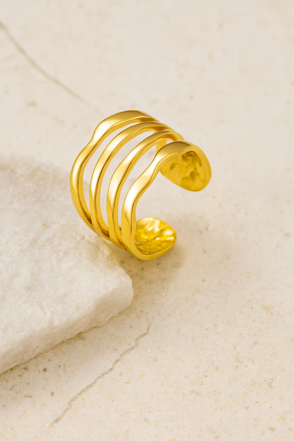 Ring, 18K Gold Plated SteelAdjustable Multi-Band Gold Cuff – Minimalist Chic Ring