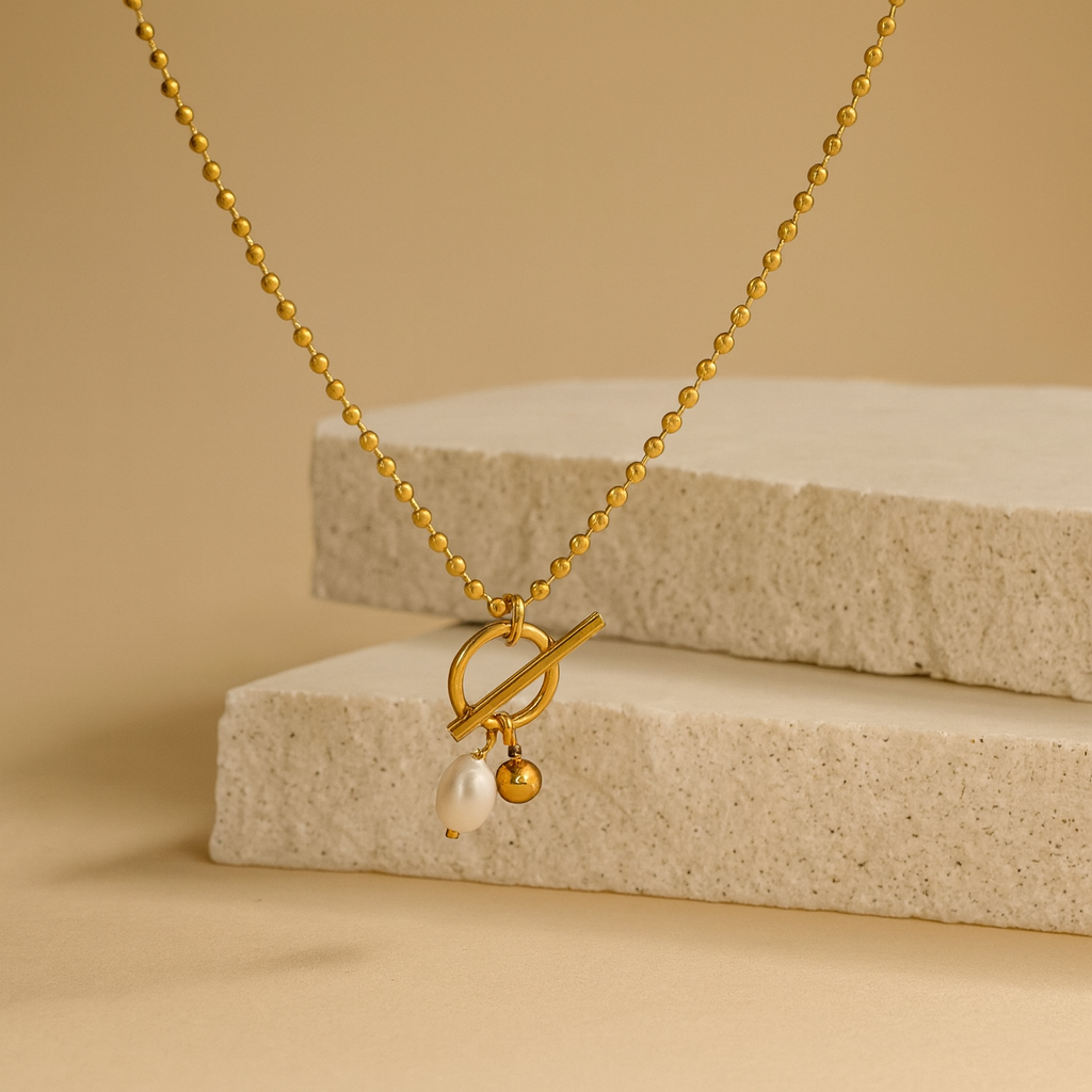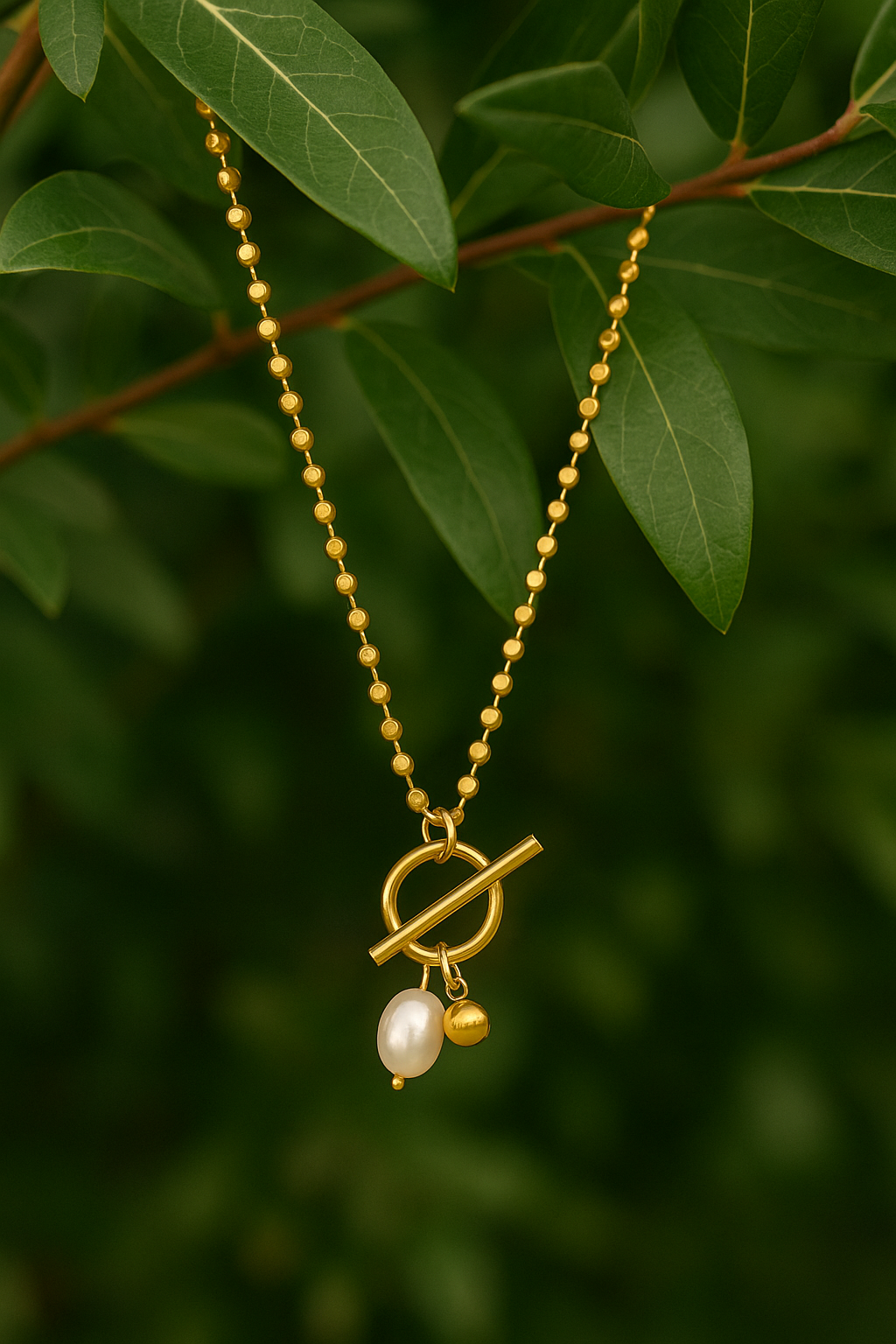 Gold Toggle Necklace with Pearl & Charm – Elegant Minimalist Jewelry Anti tarnish jewellery